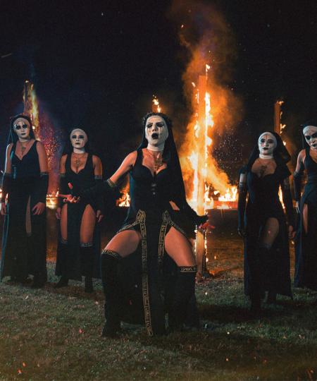 - Le groupe est entièrement composé de femmes, adoptant une imagerie de nonnes maléfiques.