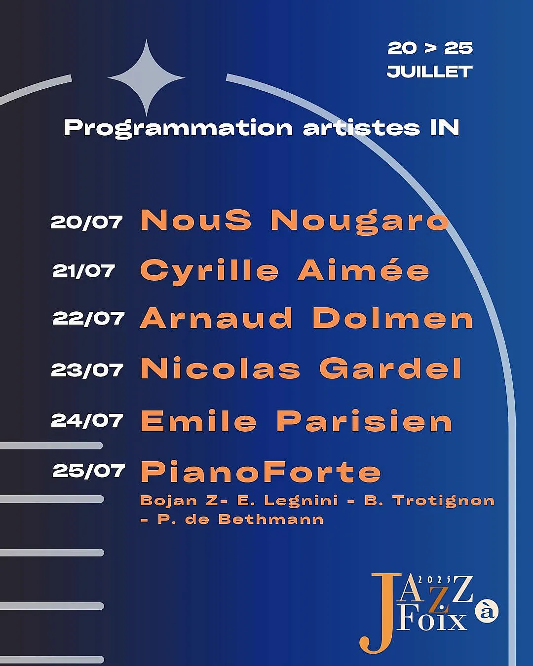 Arnaud Dolmen & le Vitygroove • Baptiste Trotignon • Bojan Z • Cyrille Aimée • Émile Parisien • Éric Legnini • Nicolas Gardel • Pierre De Bethmann