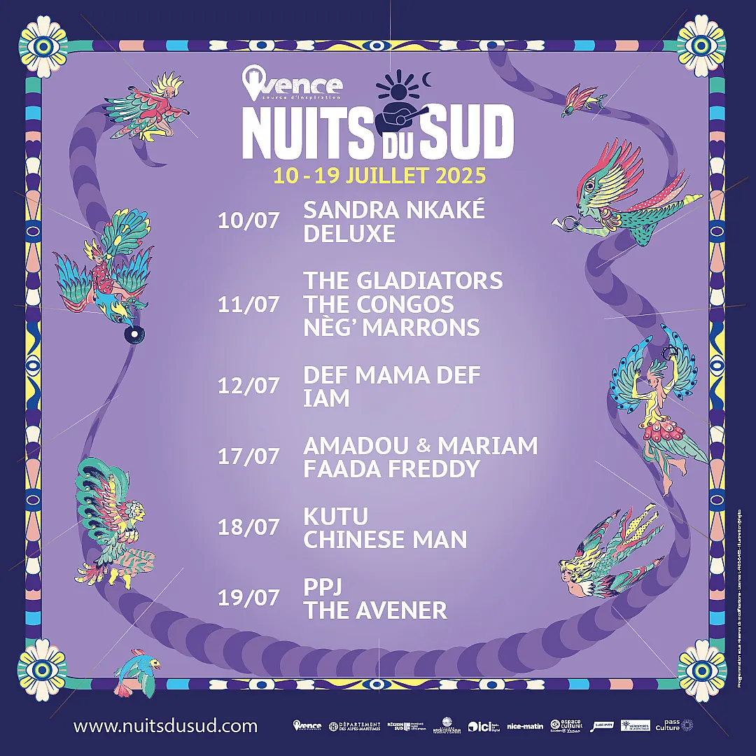 L'édition 2025 du festival se tient durant le mois de juillet sur la célèbre place du Grand Jardin à Vence. Ce rendez-vous culturel majeur met à l'honneur les musiques du monde, la pop, le reggae et les rythmes latinos. Fidèle à son histoire, l'événement rassemble chaque année des milliers de spectateurs venus profiter d'un concert unique dans une atmosphère méditerranéenne chaleureuse.